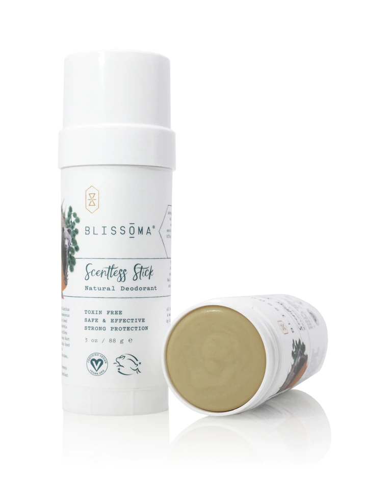 Blissoma Scentless Stick Solid superbly natural, strong deodorant comes in a handy stick form and includes moisturizing mango butter and organic, natural oils as well as protective, sweat absorbing and stink-busting powders for sensitive skin. No toxins, no problems!