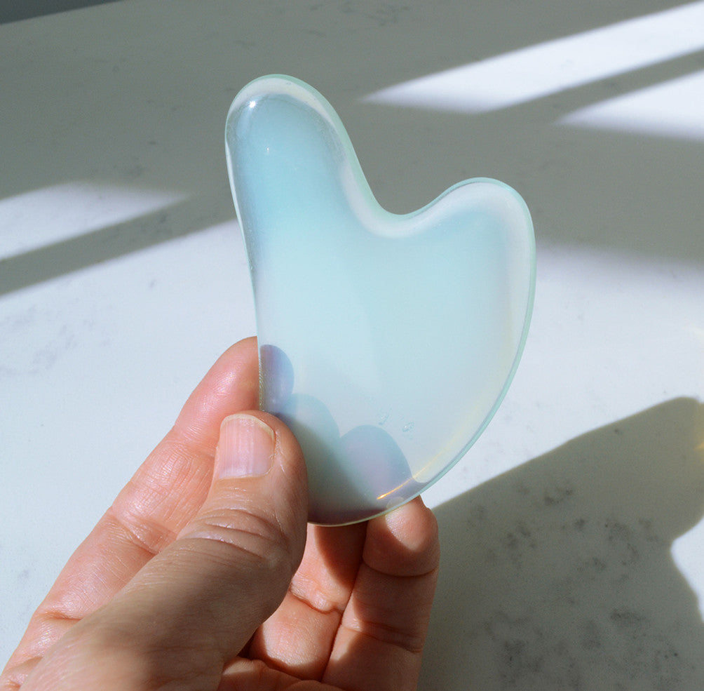 The Opalite Gua Sha tools are handmade by fair paid artisans in India. They have a delicately hazy, light blue color to them.